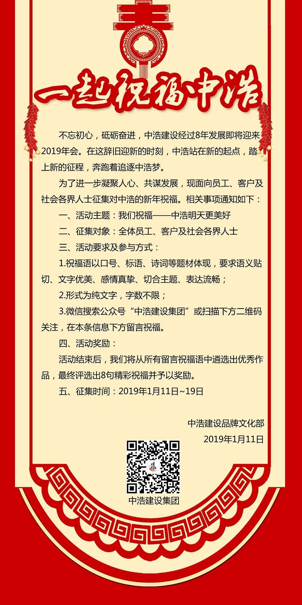 (4)微信搜索公众号“中浩建设集团”或扫描下方二维码关注,在本条信息下方留言祝福。